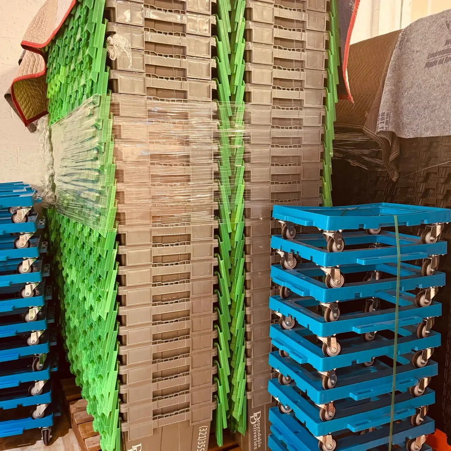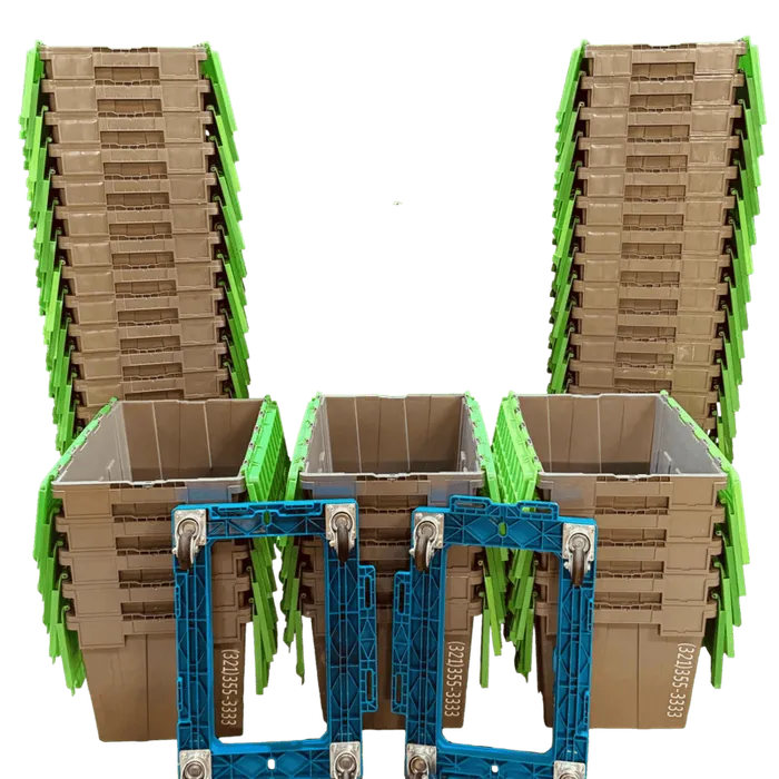 A stack of durable, lightweight totes arrives at your doorstep, ready to pack—no tape, no hassle, no waste
